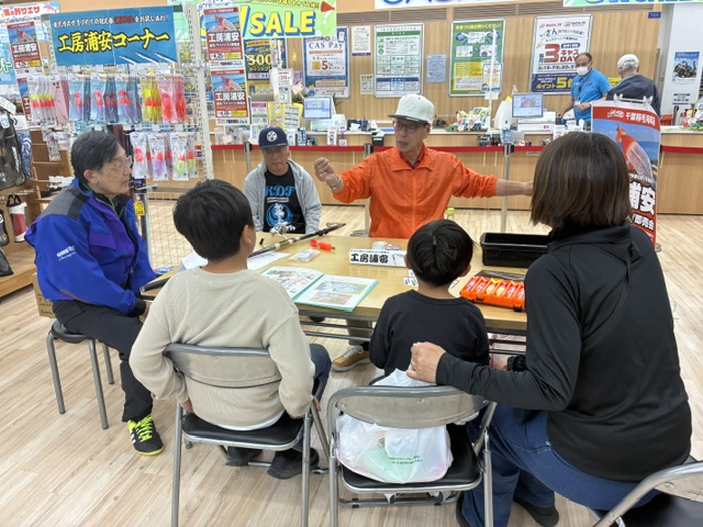 また、今回も製品をお買い求めいただきましたお客様への定番となっております仕掛け作りのコーナー(実演とプレゼント)は非常に大盛況でした。